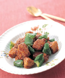 - 炒めたきゅうりは歯触りがよく、 新しいおいしさです。