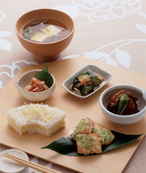 - 色とりどりの料理を少しずつ盛りつけ松花堂弁当は憧れのランチ。 家庭では、器はあるもので工夫し、気軽なお惣菜を盛って楽しみましょう。