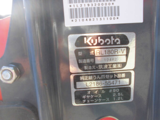 フロントローダーバケット付き 【ロータリ型式RL180RV】 エンジンオイルエレメント交換済み Fタイヤ 8-16 Rタイヤ 13.6-24