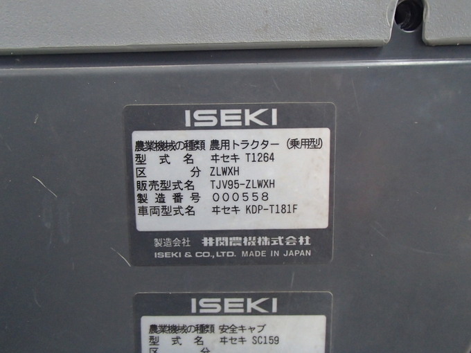Fタイヤ9.5-24 2分山 Rタイヤ13.6-38 5分山 Fウエイト26kgX2枚 外部油圧1系統 カプラー無し