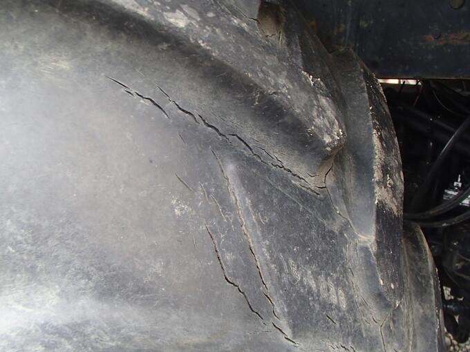 Fタイヤ 380/85R28 7分山 Rタイヤ 18.4R38 5分山 ヒビあり フック式トップリンク フック式ロアリンク ドローバー 外部油圧4系統 フロントローダー マニアフォーク 塗装剥がれあり