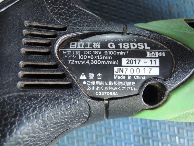 コードレスグラインダー(G18DSL)セット バッテリー2個、充電器付属 未整備現状
