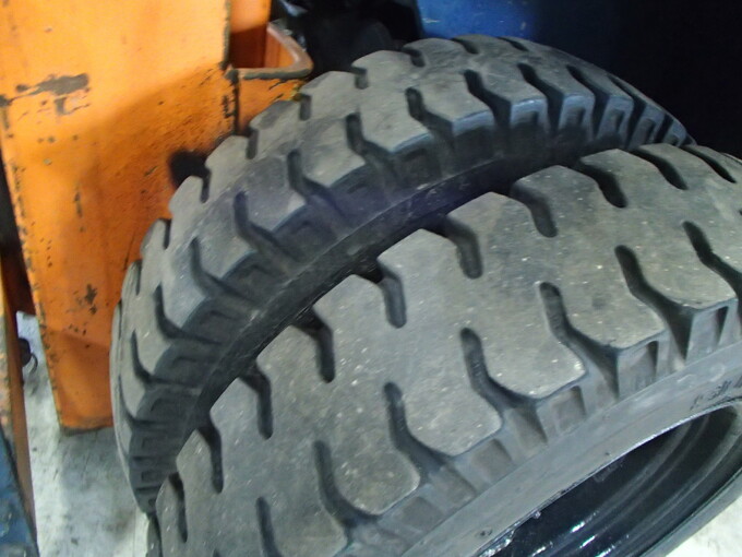 最大揚高 3000mm 最大荷重 1300kg 自重 2680kg Fタイヤ 4.50-12 ダブルタイヤ Rタイヤ 5.00-8 爪長さ 900mm 延長フォーク 1500mm付き
