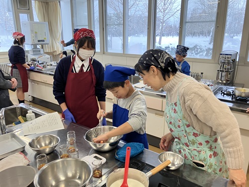 親子8組が参加し、今年の「旭川菓子博」でも話題となった「贅コクプリン」