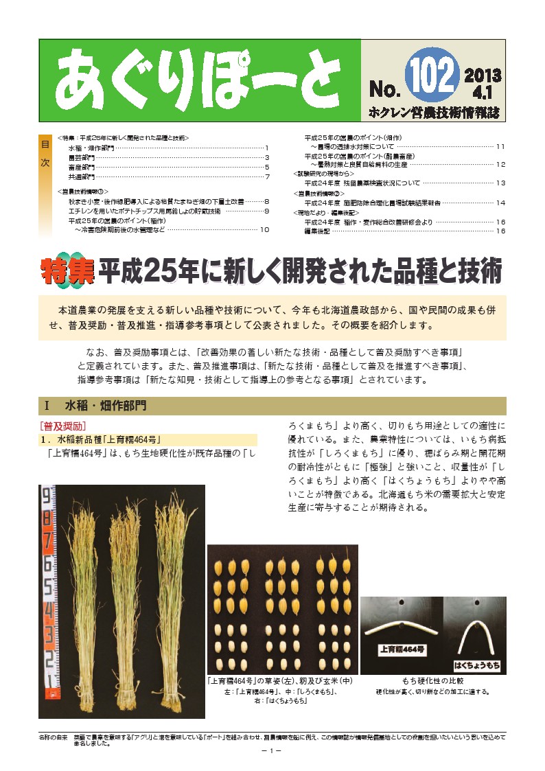- No.102特集:平成25年に新しく開発された品種と技術